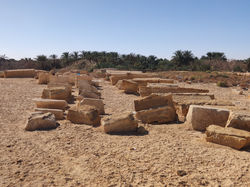 The tomb sits on a rock underneath which lies an enormous gold mine, the first found in the Western desert. The structure of the tomb takes the form of a grate", significant traces of which have been found. Generally speaking, this is closed monumental cluster', the dating of which is identical and is indicated by: